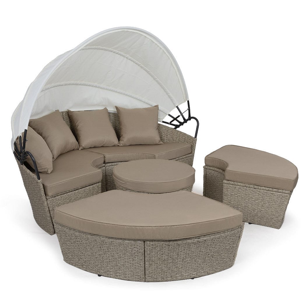 The day bed is fitted with a retractable roof canopy which can be adjusted depending on how much shade you require. This premium piece of outdoor furniture comes with four throw pillows, and is designed to stand the test of time and provide utmost comfort.